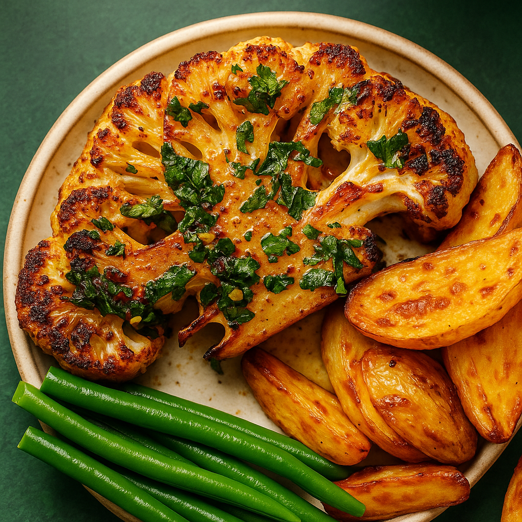 A vibrant, flavorful plant-based main that’s both wholesome and satisfying! These golden air-fried cauliflower steaks pair beautifully with smoky homemade romesco sauce and herby chickpeas for a nourishing, Mediterranean-inspired meal.