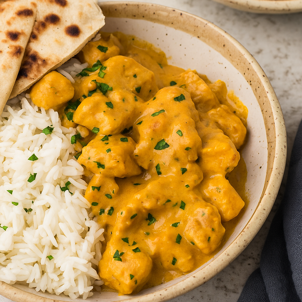 This easy and flavorful butter chicken is made right in the slow cooker! Tender chicken pieces are simmered in a creamy, spiced tomato sauce made with yogurt, cream, and butter — perfect to serve with rice or naan.