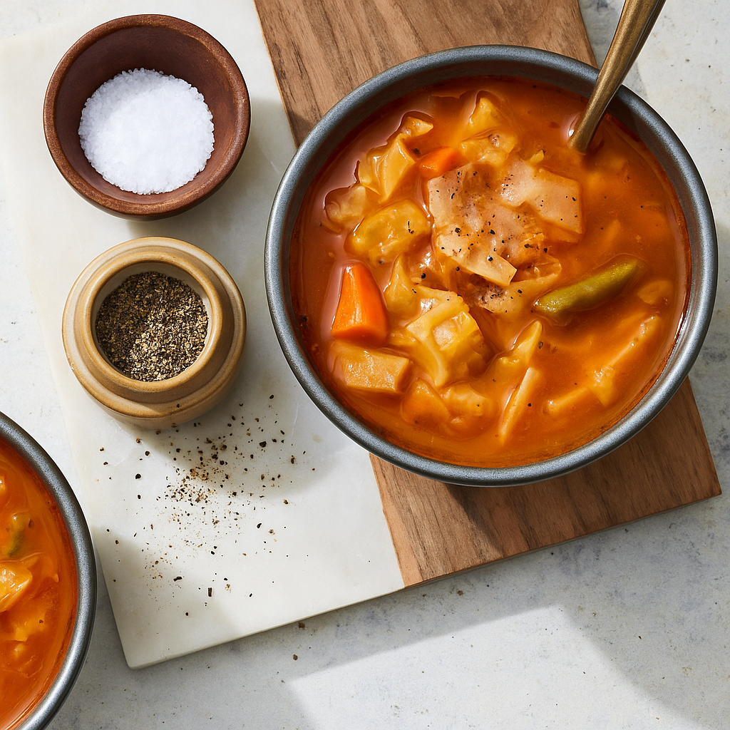 Packed with fresh vegetables and simmered in a tomato-based broth, this low-fat cabbage soup is light, filling, and perfect for meal prep or a comforting, guilt-free meal any time of the week.