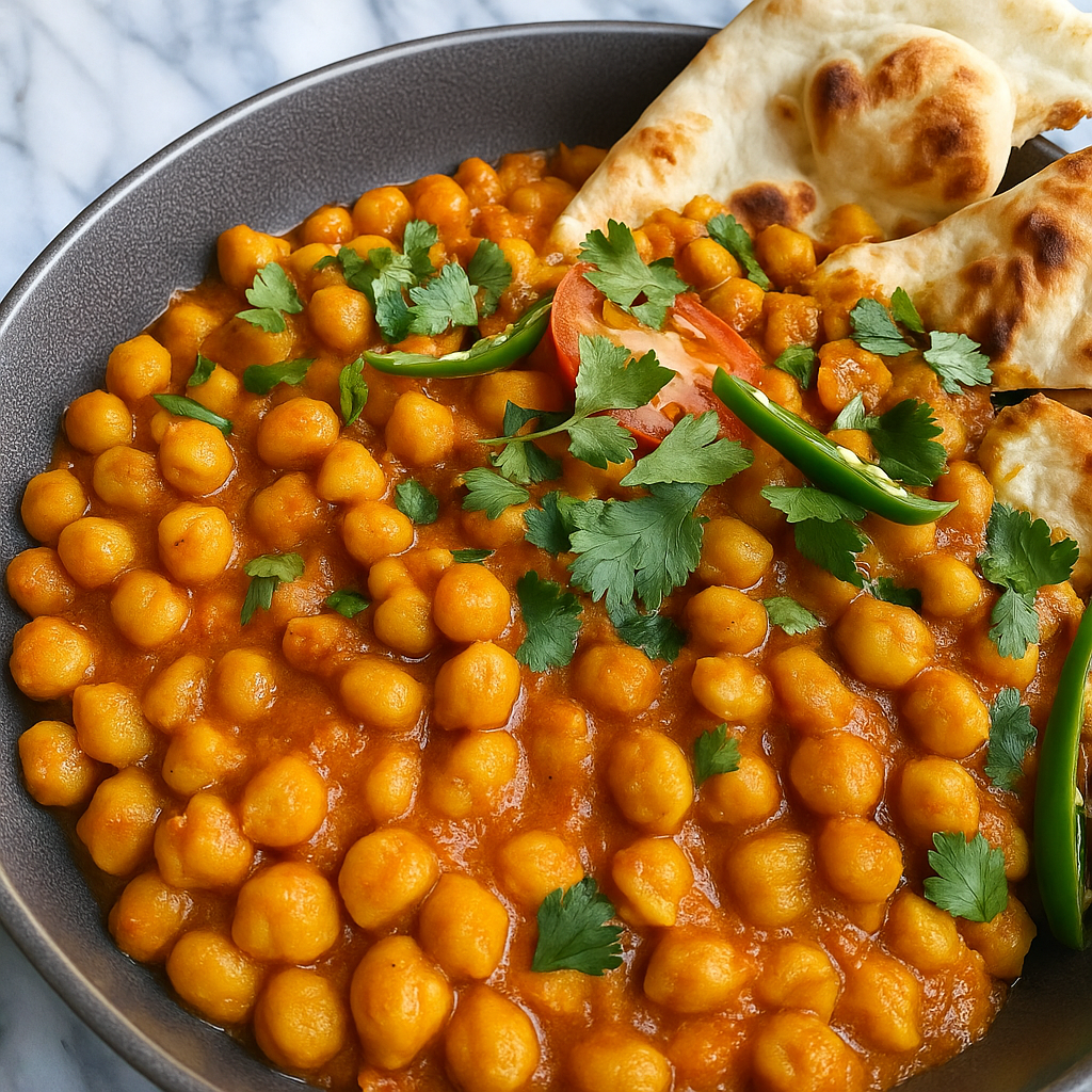 Add just enough water to make a thick, saucy consistency. Bring to a gentle boil, then stir in the chickpeas. Reduce the heat and simmer for 5–7 minutes, until the chickpeas are heated through and infused with flavor.Garnish and serve: