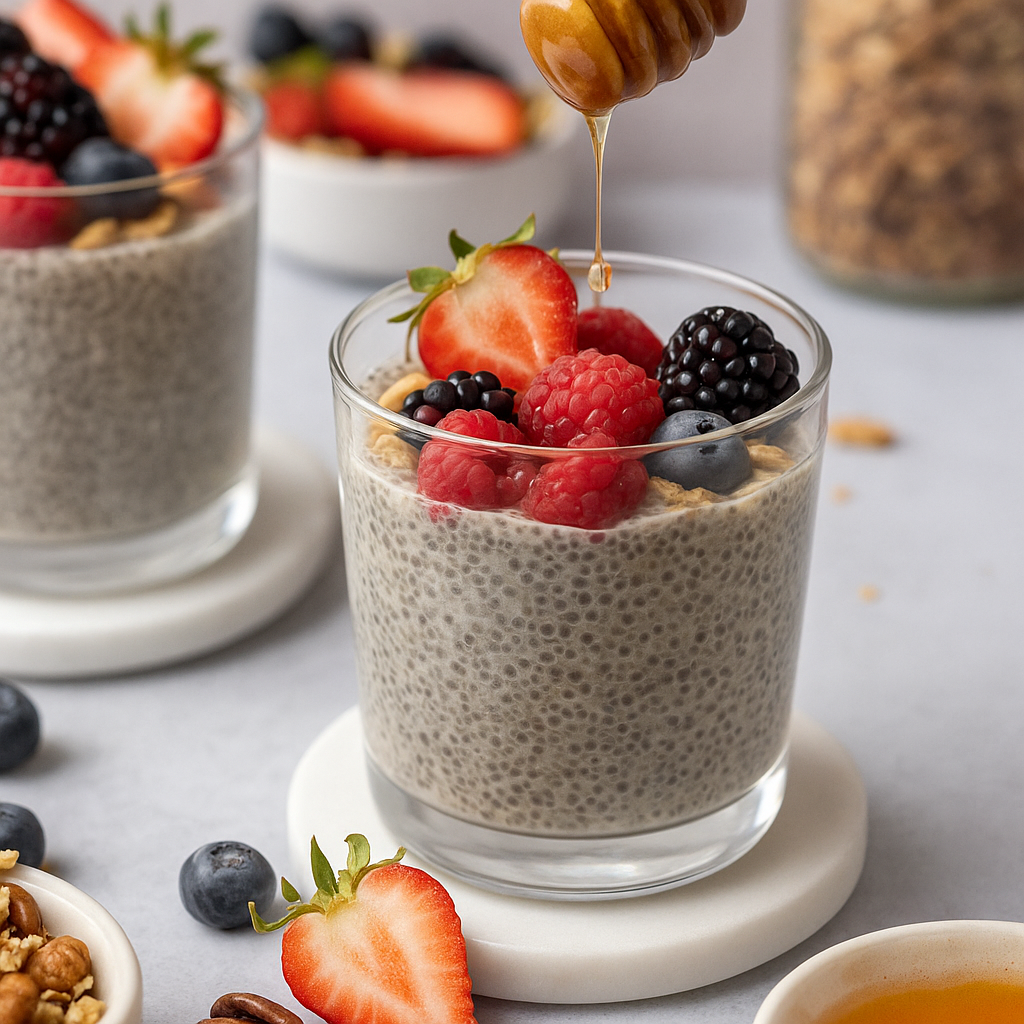 Mix chia seeds and almond milk in a bowl or mason jar.