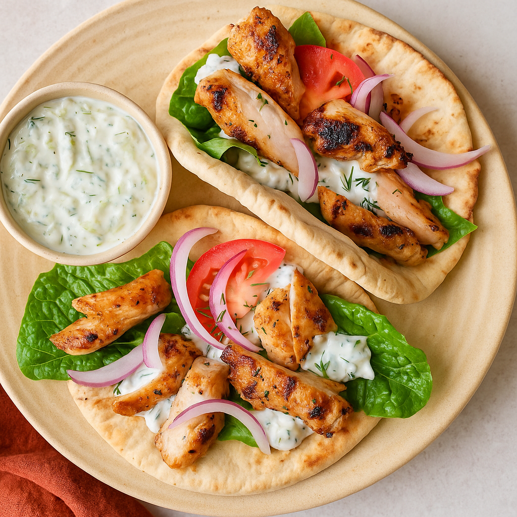 Serve the chicken sliced in pita bread with shredded lettuce, red onion, tomato, and a dollop of tzatziki sauce. Alternatively, enjoy over a fresh salad.
