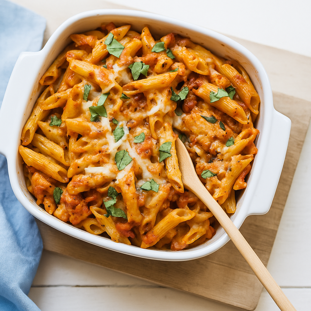 This hearty and comforting chicken pasta bake combines tender chicken, rich tomato-mascarpone sauce, and a golden cheesy topping. A perfect all-in-one dish for a family dinner or casual gathering.