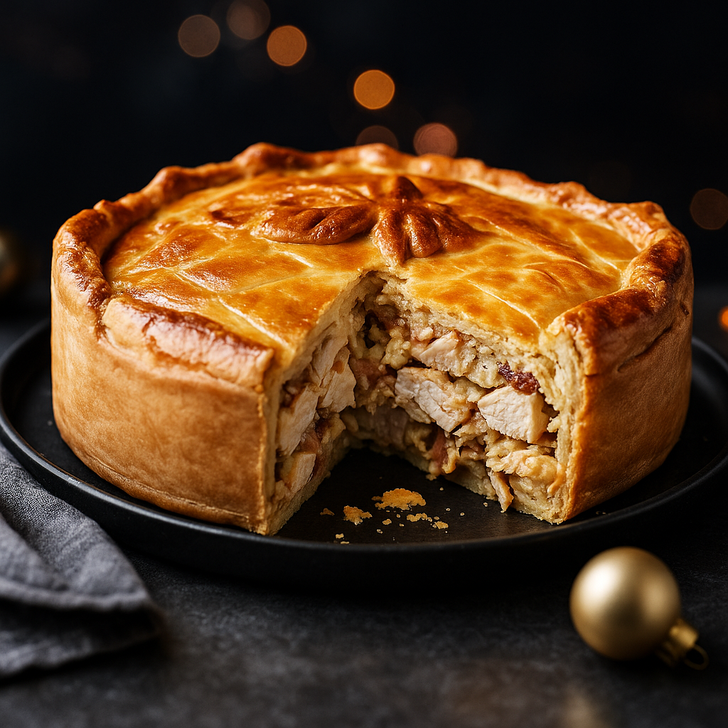 Packed with holiday flavours like sausage, cranberries, and chicken, this golden-crusted pie is a festive showstopper that both kids and adults will love. Perfect for Christmas gatherings—and it freezes beautifully too!