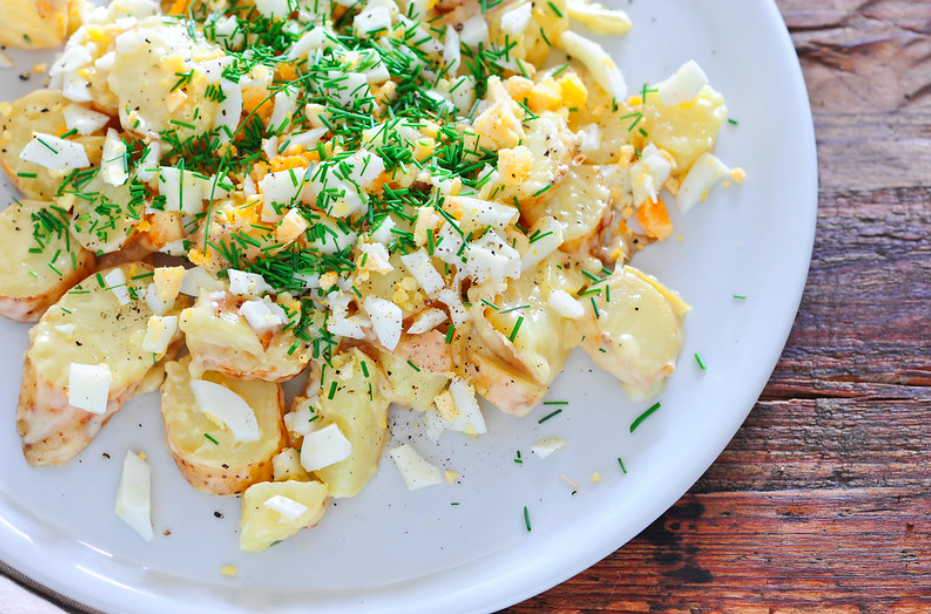 Pour the dressing over the potato mixture. Toss gently but thoroughly to coat all the ingredients. Taste and adjust seasoning as needed.