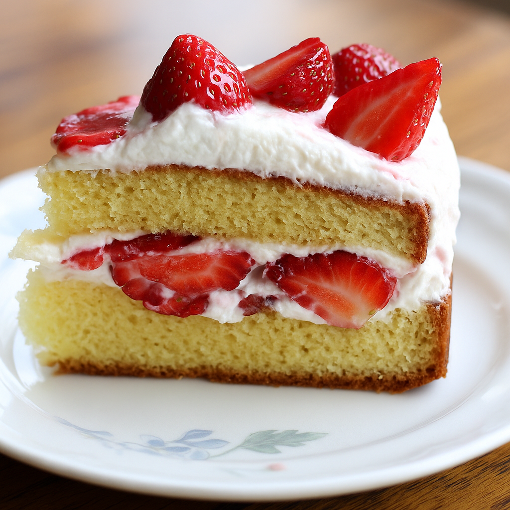 A tender, buttery layer cake filled with whipped cream and fresh strawberries—simple, classic, and perfect for spring and summer gatherings.