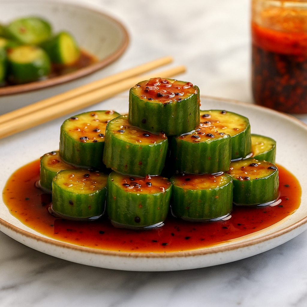 Light, crisp, and packed with flavor, this cucumber salad is inspired by the iconic Din Tai Fung appetizer. Tossed in a tangy sesame-chili vinaigrette, it’s the perfect refreshing side dish with a kick.