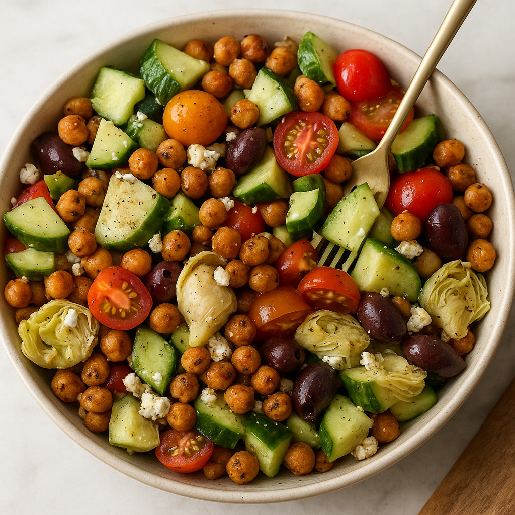 This Mediterranean Chickpea Salad is more than just a side, it’s a celebration of color, crunch, and wholesome ingredients. Packed with fiber-rich chickpeas, juicy tomatoes, crisp cucumbers, and briny olives, this vibrant dish brings the sun-soaked flavors of the Mediterranean straight to your kitchen. Tossed in a simple lemon-olive oil dressing and finished with crumbled feta and fresh herbs, it’s a perfect light lunch, picnic salad, or potluck showstopper. Plus, it’s vegetarian and easy to make in under 20 minutes.
