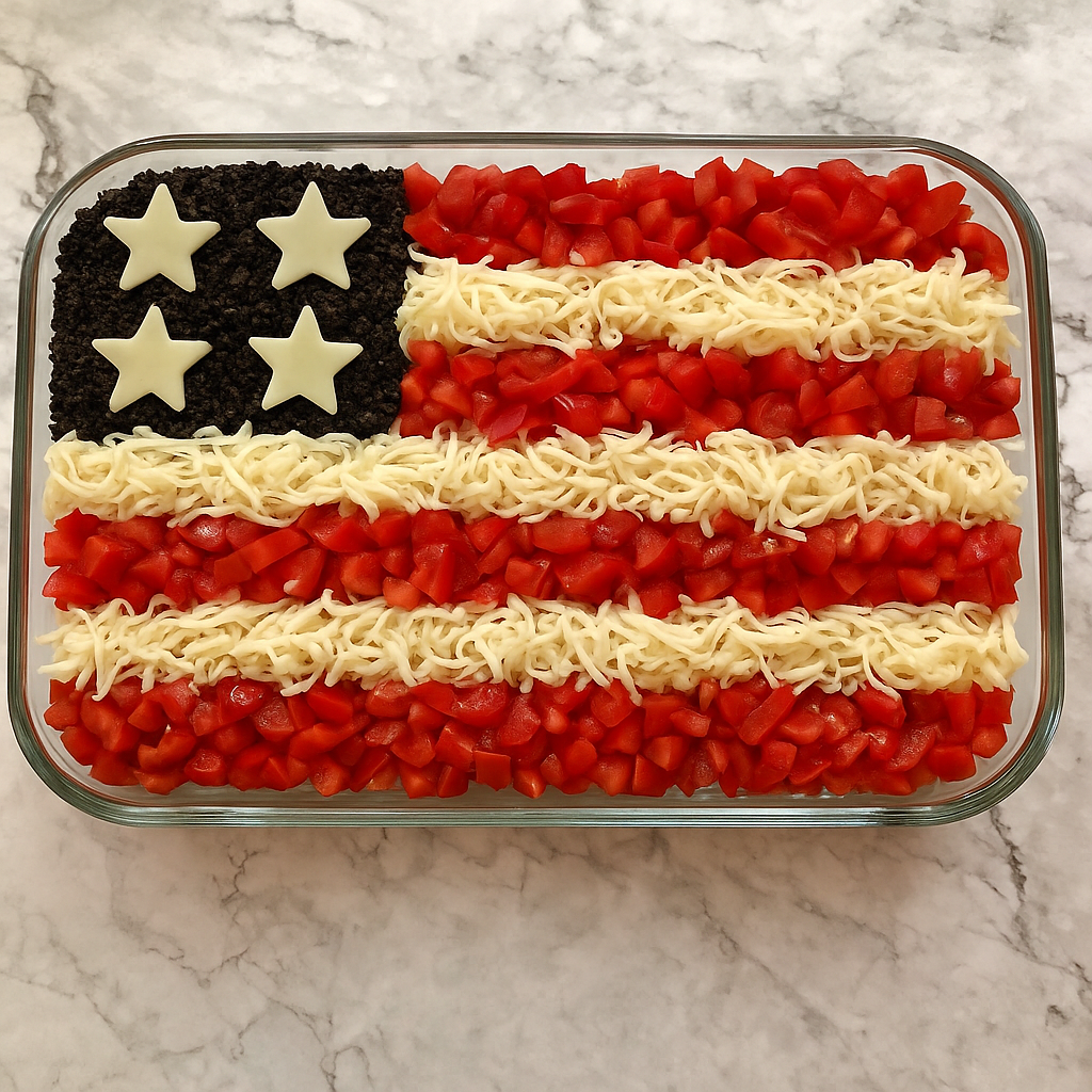 This festive 4th of July-inspired dip is a crowd-pleasing, no-cook appetizer layered with creamy, zesty, and cheesy goodness. Styled like the American flag, it’s as fun to look at as it is to eat — just add chips and watch it disappear!