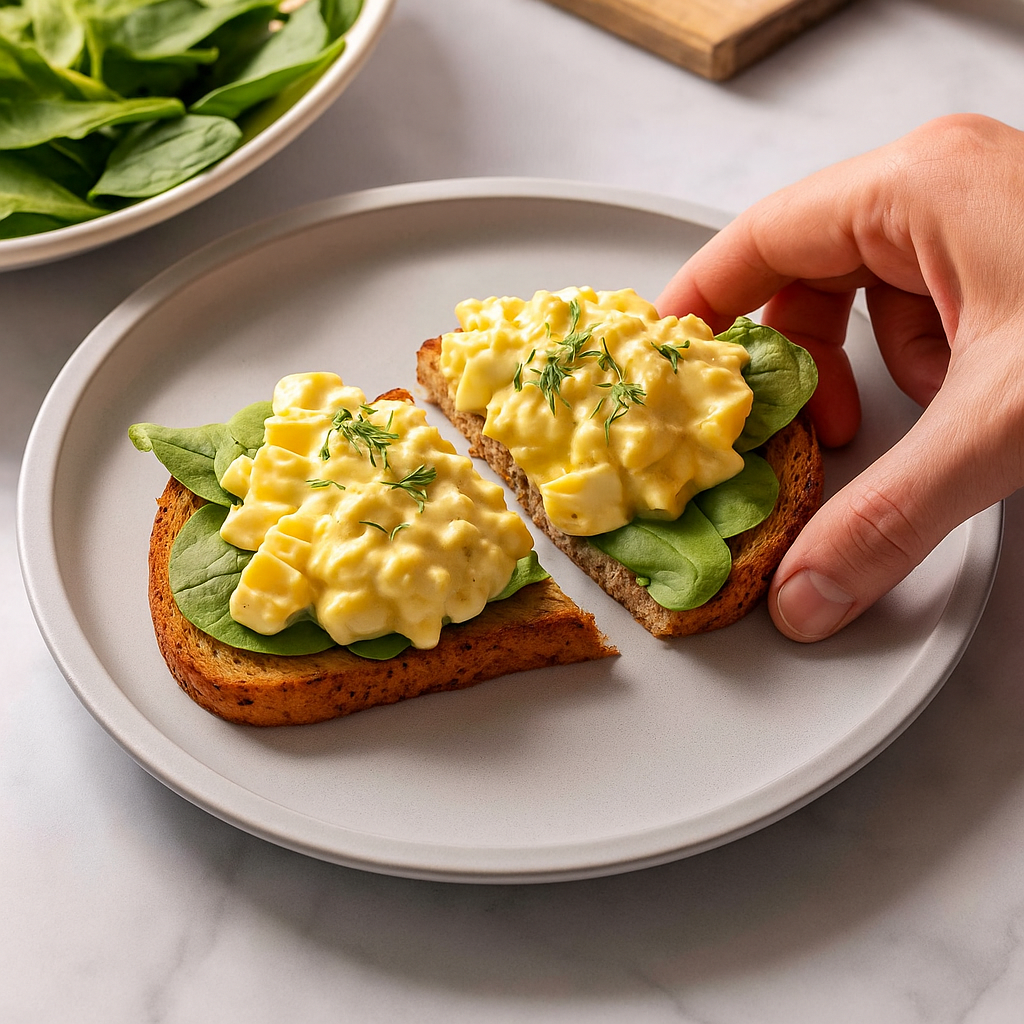 Perfect for breakfast, lunch, or a light snack—this egg salad is creamy, flavorful, and lighter thanks to using only half the yolks.