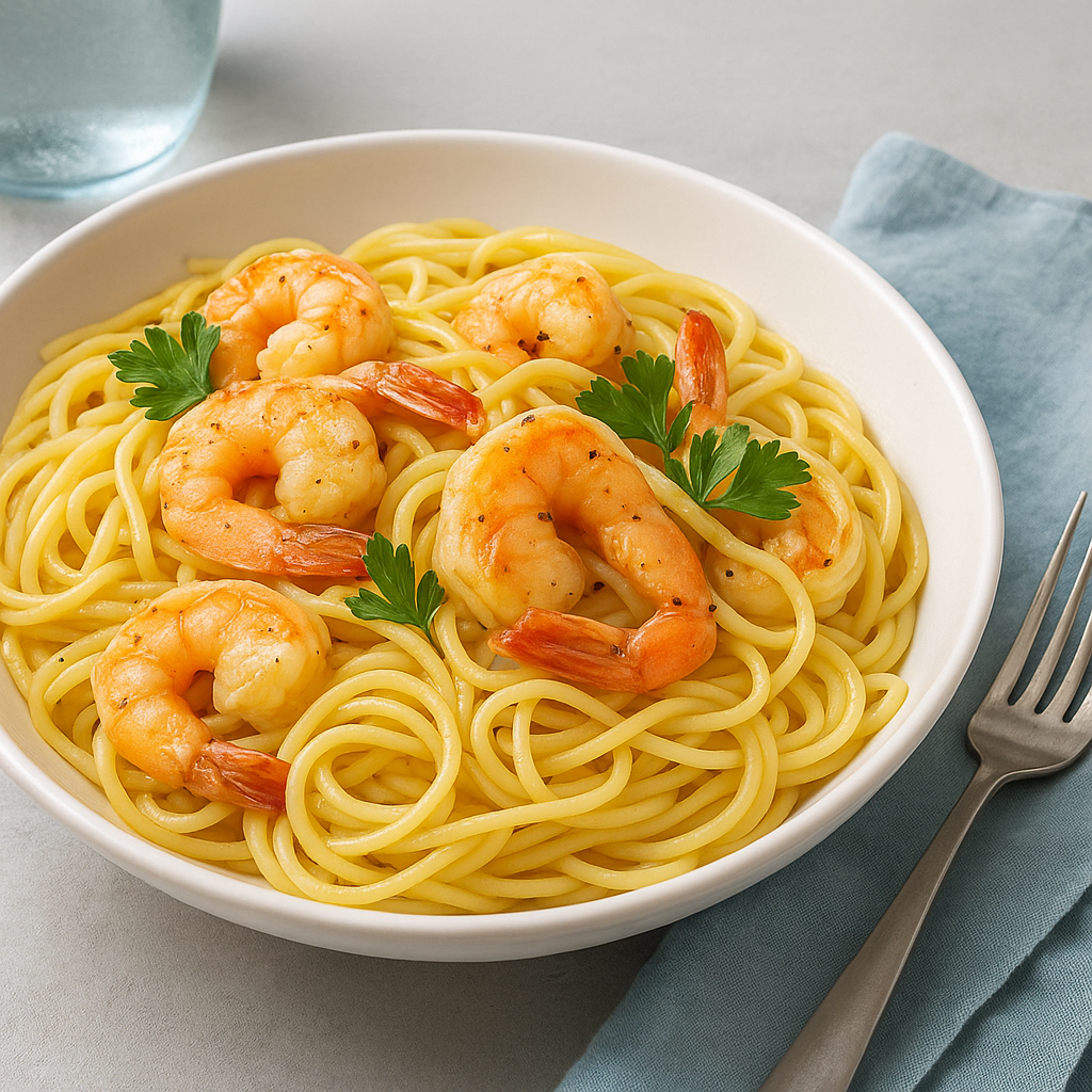 Shrimp scampi with noodles