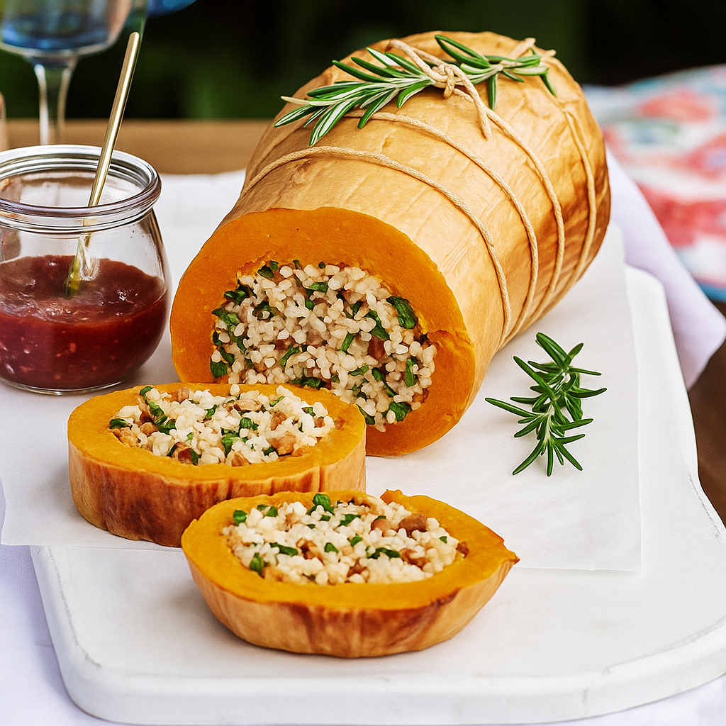 Bake for about 1 hour, or until the pumpkin flesh is tender and the filling is hot.