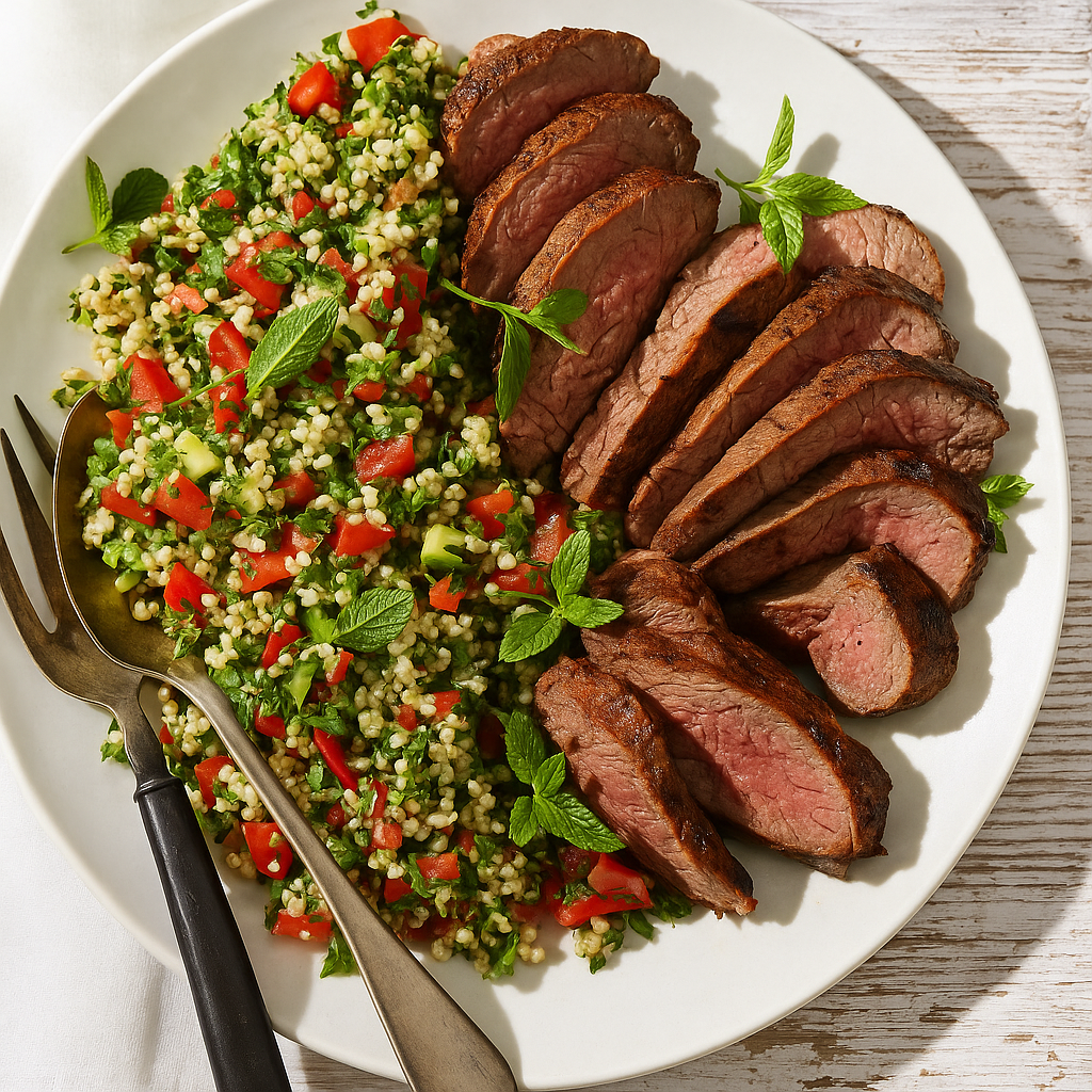 This quick and satisfying meal pairs perfectly seared steak with a refreshing cauliflower tabbouleh—a veggie-packed side that’s lemony, crisp, and full of Mediterranean flavor. It’s the ideal dinner when you want something light, yet deeply satisfying.